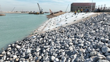 تنفيذ طبقة الصخور الواقية حول وفوق النفق المغمور في الموانئ العراقية