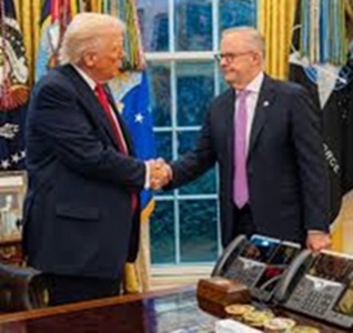 التقى رئيس الوزراء الأسترالي أنتوني ألبانيزي في البيت الأبيض الامريكي ، الرئيس الأمريكي دونالد ترامب في أول لقاء رسمي  مباشر له  ، وكان الزعيمان قد التقيا  على هامش اجتماعات الجمعية العامة للأمم المتحدة في نيويورك في ايلول سبتمبر الماضي ، في لقاء غير رسمي، وُصفه البانيزي  بأنه  لقاء (دافئ وودي) ،
