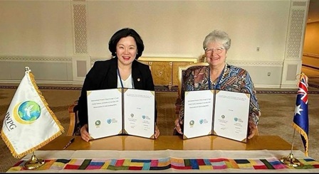 أعلنت المنطقة الثانية العالمية للمجموعة الدولية لنساء السلام، التي ترأسها المديرة الإقليمية سويون لي، عن توقيع مذكرة تفاهم مع جمعية الأمم المتحدة في أستراليا في قاعة الأمم المتحدة الشرقية بنيويورك لتوسيع التعاون في مجال تعليم السلام والتعاون الدولي.
